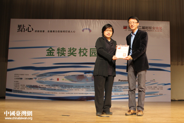 組委會為中國傳媒大學頒發(fā)感謝狀。(中國臺灣網(wǎng) 張潔 攝)