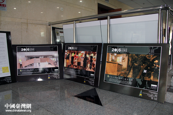 會場外展出第21屆金犢獎獲獎作品。(中國臺灣網(wǎng) 張潔 攝)