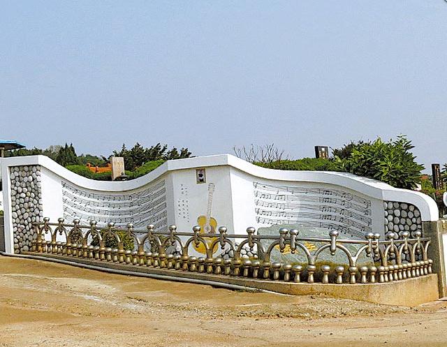 雨生園的邊墻繪有五線譜及吉他,讓音樂伴他長眠。(圖片來自臺媒)