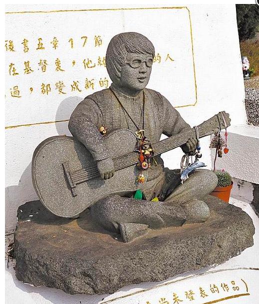 雨生園內(nèi)有他彈吉他的塑像及未發(fā)表作品。(圖片來自臺媒)