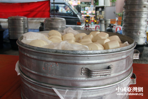 臺(tái)灣鹽水武廟精心準(zhǔn)備山西人愛吃的饅頭。(中國(guó)臺(tái)灣網(wǎng) 李典典 攝)