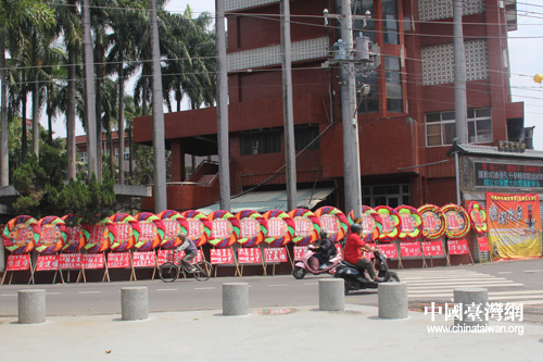 嘉義街道擺滿臺灣信眾恭迎圣駕的花匾。(中國臺灣網(wǎng) 李典典 攝)