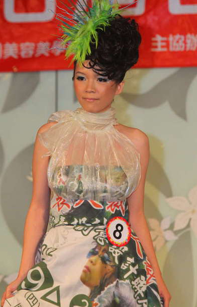 臺灣小姐初賽,一名佳麗身著環(huán)保服走秀。(圖片來自臺媒)