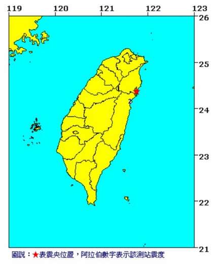 震央位于宜蘭縣南澳鄉(xiāng),震源深度9.5公里。(圖片來自臺媒)
