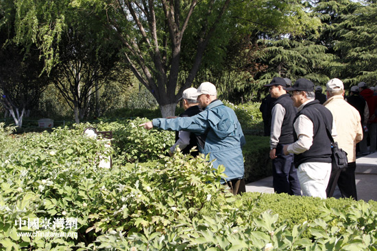 4月9日上午,由來自臺(tái)灣的統(tǒng)派人士和退役將領(lǐng)近70人組成的參訪團(tuán)一行觀賞牡丹花。(中國(guó)臺(tái)灣網(wǎng) 李丹 攝)