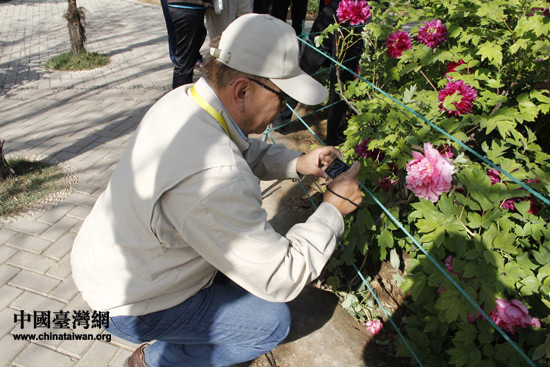 臺(tái)灣嘉賓沉迷于國色天香的牡丹花叢中。(中國臺(tái)灣網(wǎng) 李丹 攝)