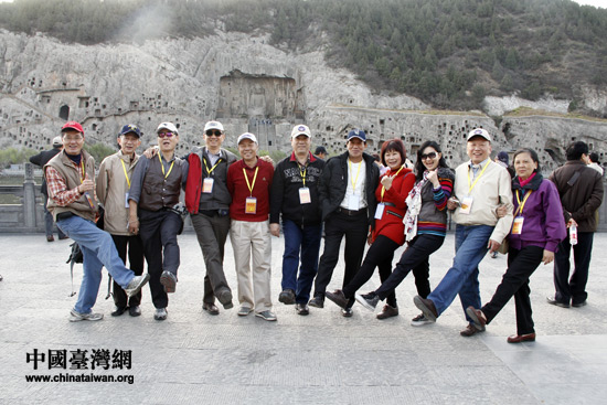 高雄市軍事院校校友會團員參觀龍門石窟。(中國臺灣網(wǎng) 李丹 攝)