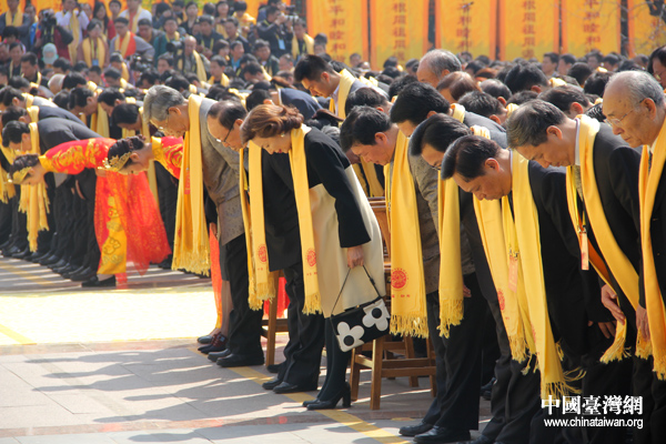 全體參拜人員向黃帝行施拜禮。(中國(guó)臺(tái)灣網(wǎng) 普燕攝)