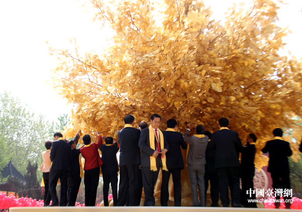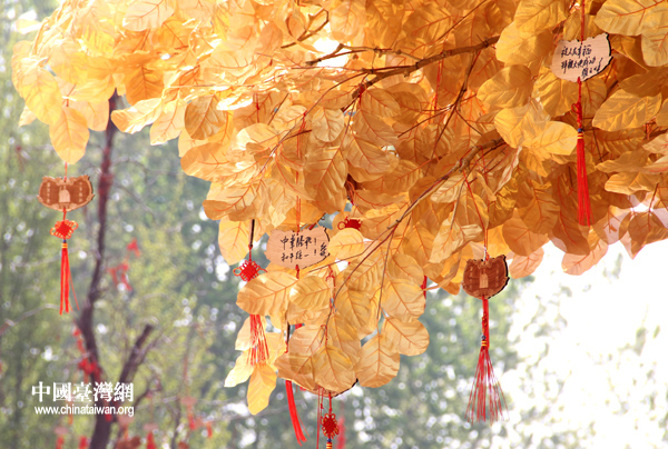 祈福中華。各界人士將寫有祈福心愿的祈福牌懸掛到景區(qū)的祈福樹上。(中國(guó)臺(tái)灣網(wǎng) 普燕攝)