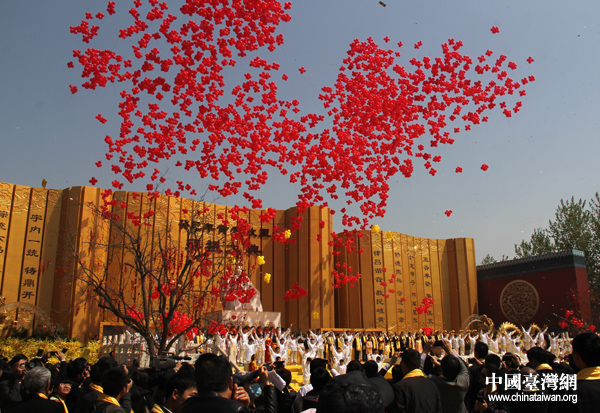 天地人和議程中,來自兩岸四地的四位少年手執(zhí)氣球,引領(lǐng)現(xiàn)場(chǎng)四周數(shù)千彩球順勢(shì)騰飛。(中國(guó)臺(tái)灣網(wǎng) 普燕攝)