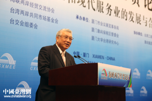 臺灣兩岸共同市場基金會董事長詹火生發(fā)表演講。(中國臺灣網(wǎng) 王思羽 攝)