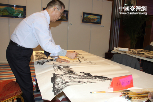 臺灣書畫家林再振在進(jìn)行創(chuàng)作。(中國臺灣網(wǎng) 郭慶娜 攝)
