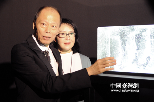 張毅與楊惠姍向媒體介紹展出的作品和創(chuàng)作的心路歷程。(中國(guó)臺(tái)灣網(wǎng) 田云鵬 攝)