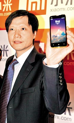 小米手機(jī)24日正式進(jìn)軍臺(tái)灣市場(chǎng),圖為董事長(zhǎng)雷軍展示小米手機(jī)。(資料圖)