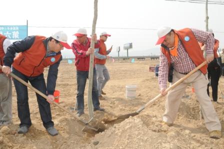 中國臺灣網(wǎng)4月26日北京消息 臺企威盛集團(tuán)第六屆公益植樹活動今(26)日在河北省懷來縣百里葡萄長廊西官路畔舉行。臺盟中央、全國臺企聯(lián)、北京市臺協(xié)、北京市臺聯(lián)以及張家口市和懷來縣的相關(guān)領(lǐng)導(dǎo)與威盛集團(tuán)副總裁、中國區(qū)行政長徐濤先生以及威盛的幾十名員工一起,在晴空麗日下栽種百余株防風(fēng)樹苗。