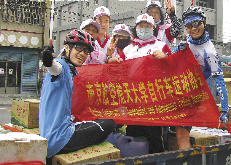 李昆(中)環(huán)臺(tái)游沿途碰到很多同好。(來源:臺(tái)灣《旺報(bào)》)