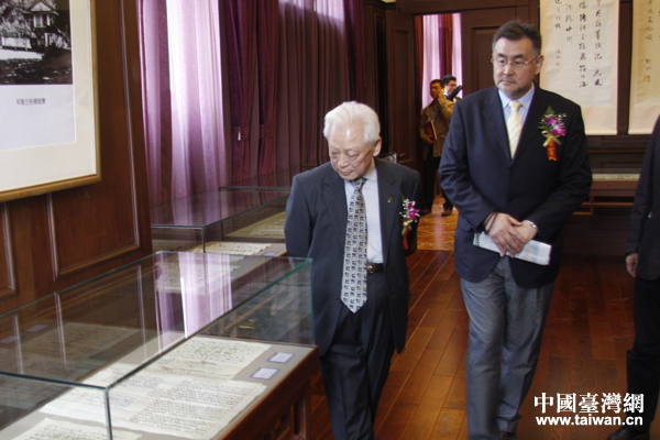 “林獻堂抗日事跡陳列館”暨北京五桂樓會館開館儀式4月28日在北京臺灣街五桂樓舉行。圖為十一屆全國人大常委會副委員長周鐵農(nóng),參觀林獻堂抗日事跡陳列館。(中國臺灣網(wǎng) 蕪?fù)?攝)