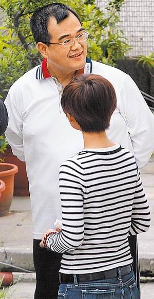 前天宣判后,林益世在律師事務(wù)所露出笑容。前為妻子彭愛佳。圖片來自臺(tái)灣媒體