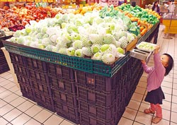 臺灣4月份 CPI同比上漲1.04%,創(chuàng)下近14個月以來新低。圖為小朋友在大賣場內伸長了手要拿試吃的水果。(來源:臺灣《中國時報》)