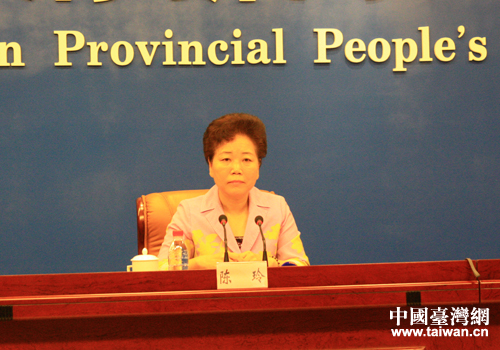 第五屆海峽論壇組委會辦公室副主任陳玲介紹論壇籌備情況并回答記者提問。(中國臺灣網(wǎng) 李瑞艷 攝)