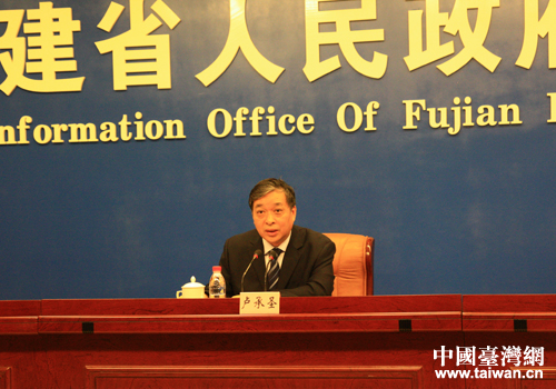 福建省政府新聞辦主任盧承圣主持發(fā)布會。(中國臺灣網(wǎng) 李瑞艷 攝)
