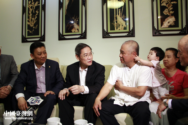 中國臺灣網(wǎng)5月18日昆山消息 17日下午,在昆山調(diào)研考察的中臺辦、國臺辦主任張志軍走進普通居民區(qū),探望在此居住臺胞的生活情況。張志軍的到來,讓老臺商吳錦堂的客廳里擠滿了人,大家排排坐在長沙發(fā)上,和主任話家常。