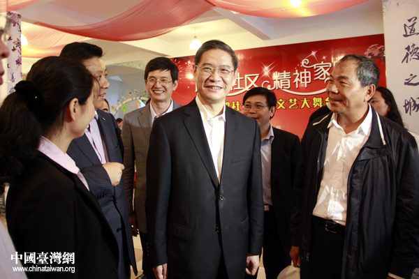 17日下午,在昆山調(diào)研察的中臺(tái)辦、國(guó)臺(tái)辦主任張志軍走進(jìn)普通居民區(qū),探望在此居住臺(tái)胞的生活情況,圖為張志軍在社區(qū)工作人員陪同下參觀居民活動(dòng)室。(中國(guó)臺(tái)灣網(wǎng) 楊麗 攝)