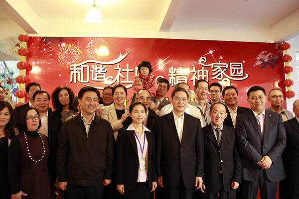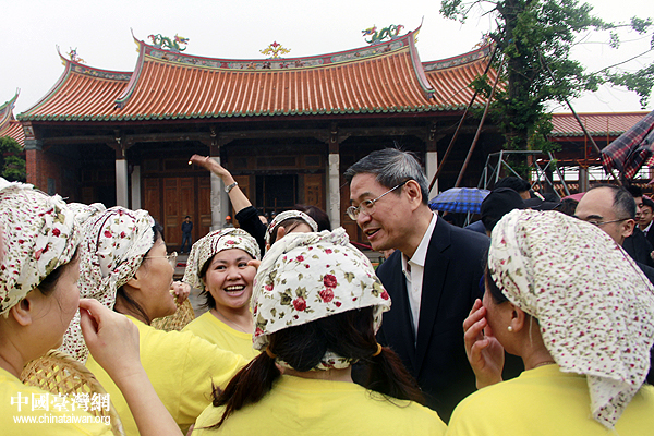 17日下午,在昆山慧聚寺參觀(guān)的中臺(tái)辦、國(guó)臺(tái)辦主任張志軍親切問(wèn)候在場(chǎng)的臺(tái)灣義工。(中國(guó)臺(tái)灣網(wǎng) 楊麗 攝)