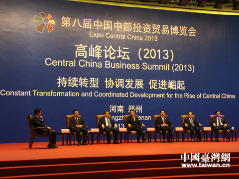 第八屆中國中部投資貿(mào)易博覽會(huì)高峰論壇現(xiàn)場(chǎng)。 (中國臺(tái)灣網(wǎng) 馬萌 攝)