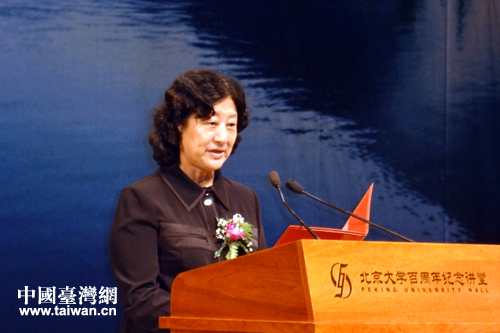 今天上午,中國(guó)老年學(xué)學(xué)會(huì)與浙江省麗水市委、市政府在北京舉行“中國(guó)長(zhǎng)壽之鄉(xiāng)—麗水”授牌儀式暨新聞發(fā)布會(huì),中國(guó)老年學(xué)學(xué)會(huì)正式授予麗水為“中國(guó)長(zhǎng)壽之鄉(xiāng)”。圖為中國(guó)老年學(xué)學(xué)會(huì)常務(wù)副會(huì)長(zhǎng)趙寶華講話。(中國(guó)臺(tái)灣網(wǎng) 王偉 攝)