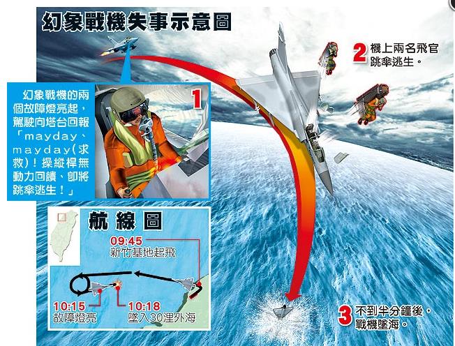 幻影戰(zhàn)機(jī)失事示意圖。(圖片來自臺媒)