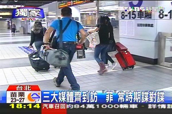 菲律賓主流媒體抵臺(tái),將采訪漁船案遇難者家屬。(圖片來(lái)自臺(tái)灣TVBS)