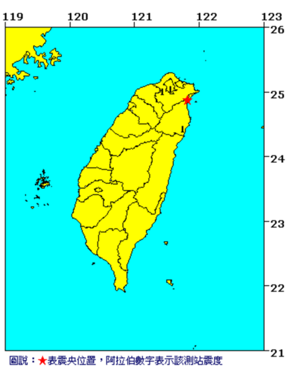 25日下午14時8分,臺灣宜蘭縣頭城鎮(zhèn)發(fā)生規(guī)模歷史4.0級地震。(圖片來源:臺灣氣象部門網(wǎng)站)