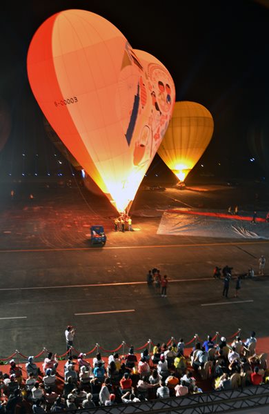 期待已久的熱氣球自由飛翔,在游客滿心期待下,包括臺灣心形球在內(nèi)的5顆熱氣球,順利升空,沿著海岸山脈,飛躍棋盤式的龍?zhí)镛r(nóng)村。接著穿過臺9線公路,降落在卑南溪旁。