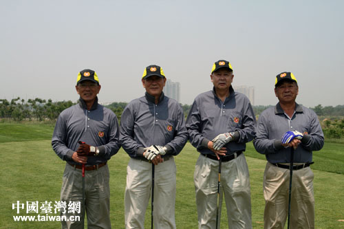 兩岸退役將軍比賽間歇合影留念。(中國臺灣網(wǎng) 張潔 攝)