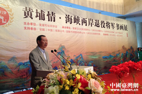 黃埔情·海峽兩岸退役將軍書畫展5日上午在青島博物館開幕,原海協(xié)會(huì)副會(huì)長、“黃埔情”系列活動(dòng)組委會(huì)顧問王在希代表組委會(huì)致辭。(中國臺(tái)灣網(wǎng) 張潔 攝)