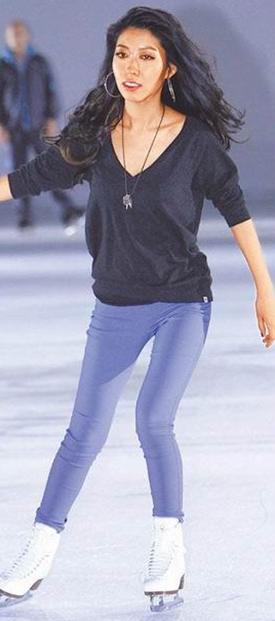 曲婉婷昨在臺(tái)北小巨蛋練習(xí)滑冰,架式頗具專業(yè)。(圖片來自臺(tái)媒。)