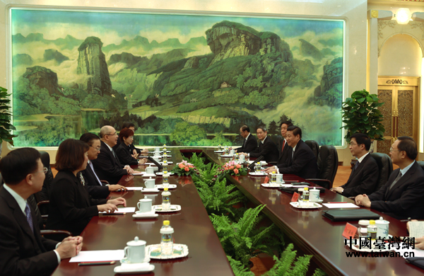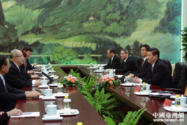 6月13日,中共中央總書記習(xí)近平在北京人民大會堂會見中國國民黨榮譽主席吳伯雄。(中國臺灣網(wǎng) 王偉 攝)