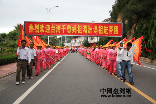 6月13日,來自臺灣北中南179家媽祖宮廟970名信眾代表來到“媽祖故里”福建莆田湄洲島拜謁進香,祈求兩岸風調(diào)雨順。以“中華媽祖情、兩岸一家親”為主題的第五屆海峽論壇·媽祖文化周開幕。(中國臺灣網(wǎng) 扶海濤 攝)