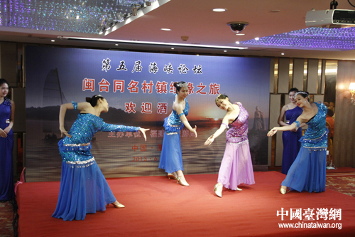 在閩臺(tái)同名鄉(xiāng)鎮(zhèn)續(xù)緣之旅啟動(dòng)儀式上,熱情的廈門(mén)姑娘翩翩起舞(中國(guó)臺(tái)灣網(wǎng)記者 蕪?fù)?nbsp;攝)