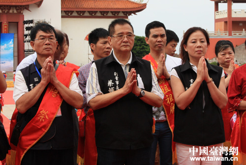 臺(tái)灣云林北港朝天宮副董事長蔡輔雄帶領(lǐng)臺(tái)灣媽祖信眾進(jìn)行了小型祭祀儀式。 (中國臺(tái)灣網(wǎng) 樊玉嬌 攝)