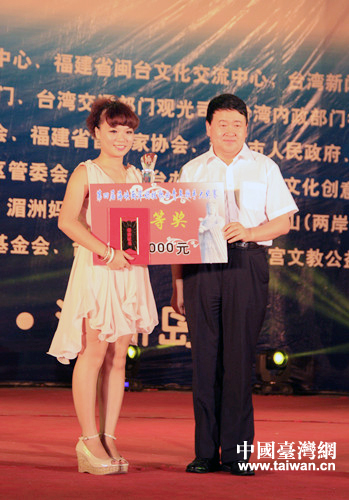 中國(guó)臺(tái)灣網(wǎng)6月15日莆田消息 6月14日晚,媽祖之歌·第四屆海峽兩岸媽祖歌曲青年歌手大獎(jiǎng)賽成績(jī)?cè)阡刂迧u天后廣場(chǎng)揭曉。經(jīng)過(guò)13日晚的決賽,來(lái)自臺(tái)灣的青年歌手吳盈靜榮獲一等獎(jiǎng)。