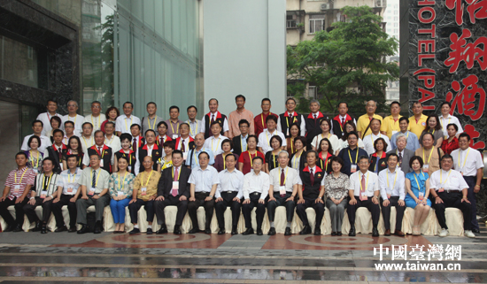 第五屆海峽論壇·致公懇談會(huì)由致公黨福建省委承辦,大陸和臺(tái)灣四個(gè)團(tuán)體協(xié)辦。來自兩岸的90余名嘉賓,其中包括來自臺(tái)灣十一個(gè)團(tuán)體的58名嘉賓參會(huì)。圖為兩岸部分嘉賓在會(huì)場外合影留念。(中國臺(tái)灣網(wǎng) 高斯斯 攝)