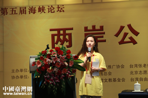 來(lái)自四川綿竹的舞蹈老師廖智在現(xiàn)場(chǎng)講述她的公益故事。(中國(guó)臺(tái)灣網(wǎng) 普燕 攝)