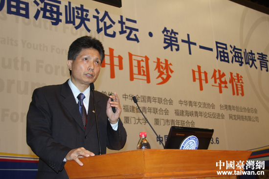 中國臺灣網(wǎng)6月16日廈門消息 6月15日,以“中國夢·中華情”為主題的第十一屆海峽青年論壇在廈門大學舉行,來自兩岸四地的青年代表近1000人出席。臺灣青年創(chuàng)業(yè)協(xié)會總會副會長、臺灣鼎王企業(yè)有限公司總經(jīng)理許登旺出席論壇并發(fā)表演講,他以自己的創(chuàng)業(yè)歷程現(xiàn)身說法,寄望兩岸青年大膽敢夢、積極筑夢。