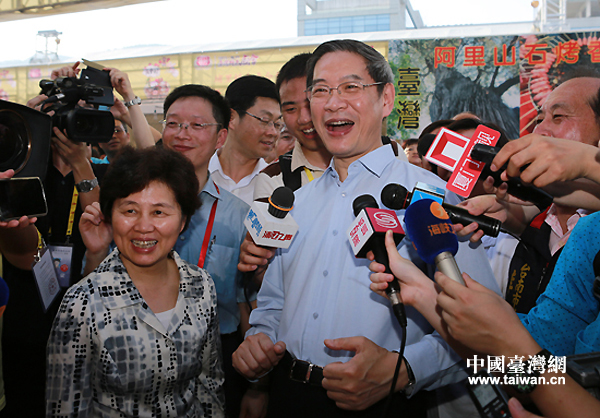 6月16日下午,中共中央臺(tái)辦主任張志軍在第五屆海峽論壇期間走進(jìn)臺(tái)灣特色廟會(huì),了解臺(tái)灣業(yè)者經(jīng)營(yíng)情況,品嘗原汁原味的臺(tái)灣小吃,大贊好呷(閩南語(yǔ):好吃)!。ㄖ袊(guó)臺(tái)灣網(wǎng) 田云鵬 攝)