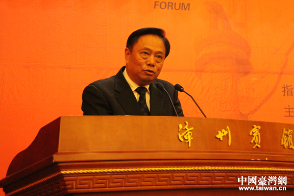 全國(guó)臺(tái)聯(lián)黨組書記梁國(guó)揚(yáng)在論壇現(xiàn)場(chǎng)發(fā)表致辭。(中國(guó)臺(tái)灣網(wǎng) 孟雅詩(shī) 攝)