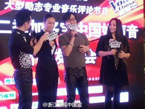 《中國(guó)好聲音》第二季公布導(dǎo)師名單,由庾澄慶(左起)、那英、汪峰、張惠妹擔(dān)任導(dǎo)師。(圖片來(lái)自新浪微博)