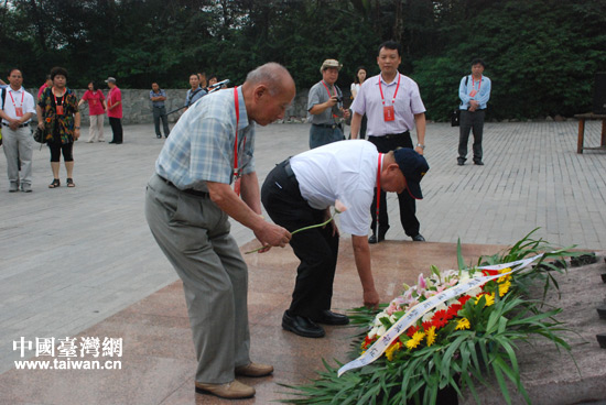 6月17日上午,在中國壯士群雕廣場,黃埔軍校同學(xué)會會長林上元,臺灣退役上將、中華戰(zhàn)略學(xué)會理事長王文燮,以及來自海峽兩岸的黃埔親屬、黃埔代表一起,為抗戰(zhàn)英烈雕像敬獻(xiàn)了花環(huán),并默哀致意。(中國臺灣網(wǎng) 李丹 攝)