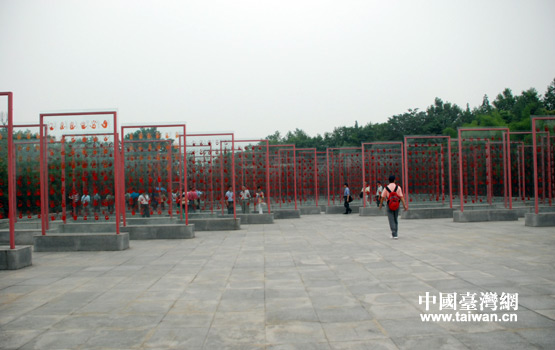 抗戰(zhàn)老兵手印廣場,手印碑林呈勝利的“V”字型。重重疊疊的手印,形成排山倒海之勢,這就是民族力量的真切體現(xiàn)。(中國臺灣網(wǎng) 李丹 攝)
